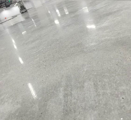 (1)大型水磨石機裝配粗的金剛石磨頭水磨,將地面打磨平整,并完全去除環(huán)氧樹脂涂層。